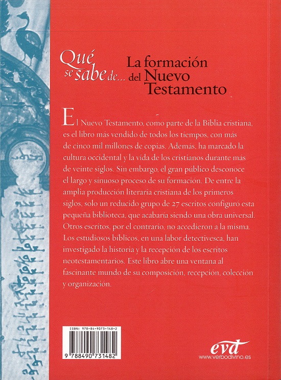David ÁLVAREZ CINEIRA, La formación del Nuevo Testamento. (Qué se sabe de...). Verbo Divino, Estella (Navarra) 2015, 287 pp., 20 x 14,5 cm.
